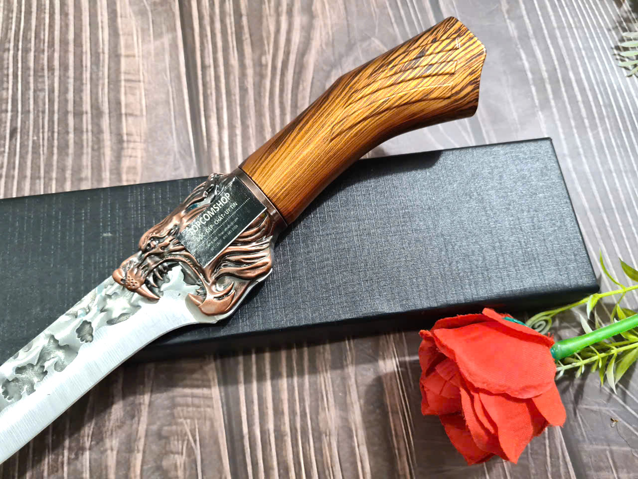 D SỐ 1 : TỔNG DÀI : 29cm, LƯỠI: 14cm,RỘNG : 4.5cm, dày: 3mm, NẶNG : 1.5 lạng, CHẤT liệu lưỡi: 4Cr13MOV (thép 4 crom 13 molypden vanadi).Chất liệu CÁN: nhựa abs xịn . khâu đầu rồng và chuôi bằng thép 4cr13