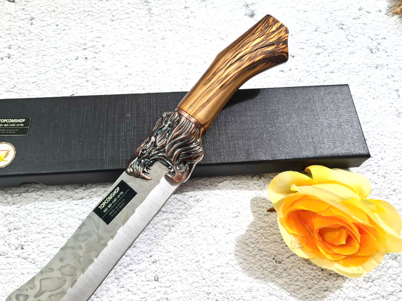 D SỐ 4 : TỔNG DÀI : 32cm, LƯỠI: 18cm,RỘNG : 4.5cm, dày: 3mm, NẶNG : 2.3 lạng, CHẤT liệu lưỡi: 4Cr13MOV (thép 4 crom 13 molypden vanadi).Chất liệu CÁN: nhựa abs xịn . khâu đầu rồng và chuôi bằng thép 4cr13