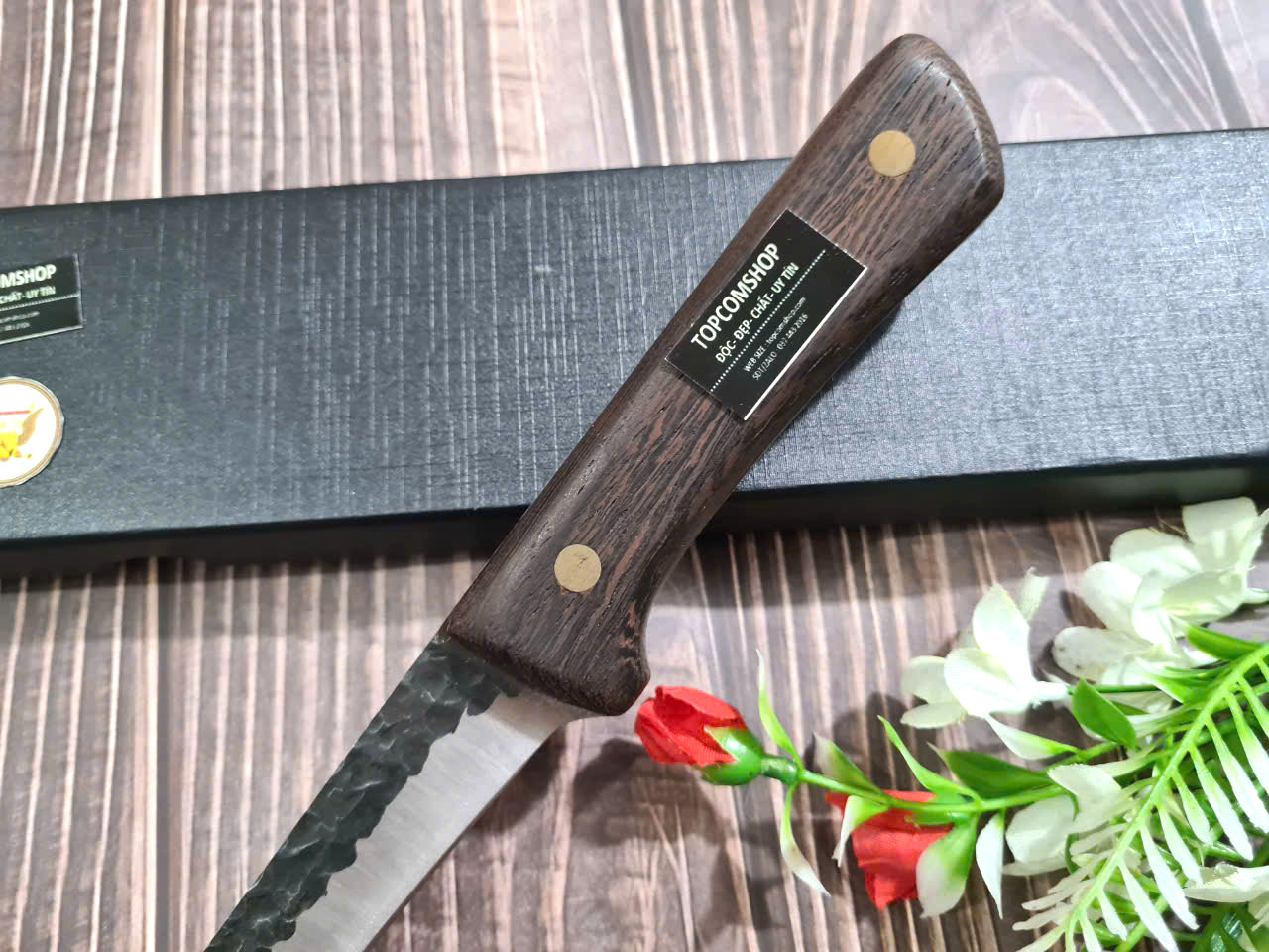 D SỐ 1 : TỔNG DÀI : 27cm, LƯỠI: 14cm,RỘNG : 2.3cm, dày: 2.5mm, CHẤT liệu lưỡi: 5Cr15MOV (thép 5 crom 15 molypden vanadi).Chất liệu CÁN: gỗ Cánh gà,.NẶNG : 1.5 lạng