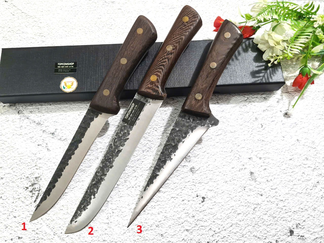 D SỐ 2 : TỔNG DÀI : 30cm, LƯỠI: 17.5cm,RỘNG : 2.9cm, dày: 2.5mm, CHẤT liệu lưỡi: 5Cr15MOV (thép 5 crom 15 molypden vanadi).Chất liệu CÁN: gỗ Cánh gà,.NẶNG : 2 lạng