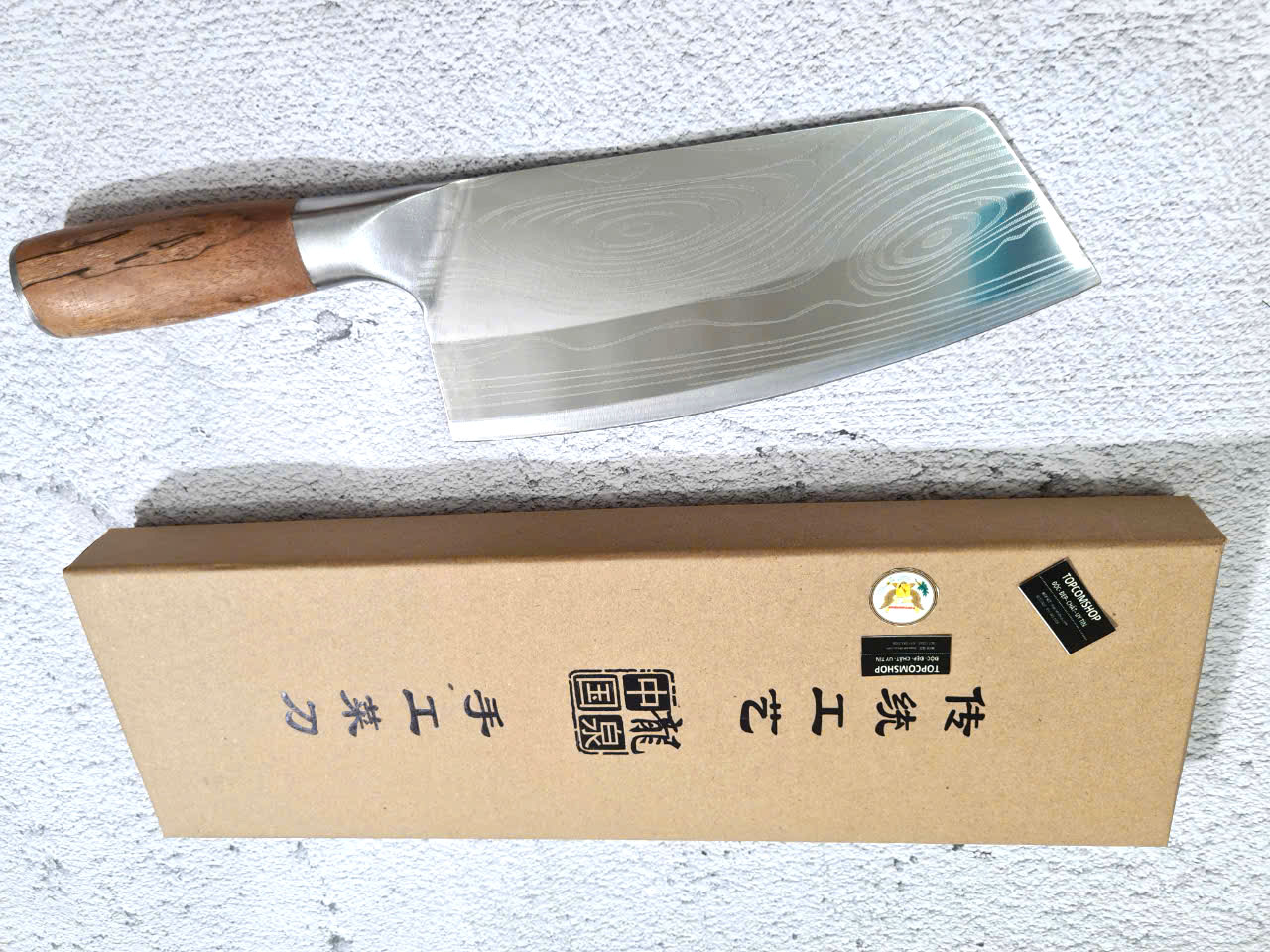 - Chức năng: thái thịt, rau củ quả - Kích thước: Lưỡi: 17cm, cán: 12cm, rộng: 5cm, dầy: 1ly, trọng lượng: 200g - Cán : Gỗ cẩm chỉ, Chốt, Khâu ĐỒNG ĐỎ , keo liên