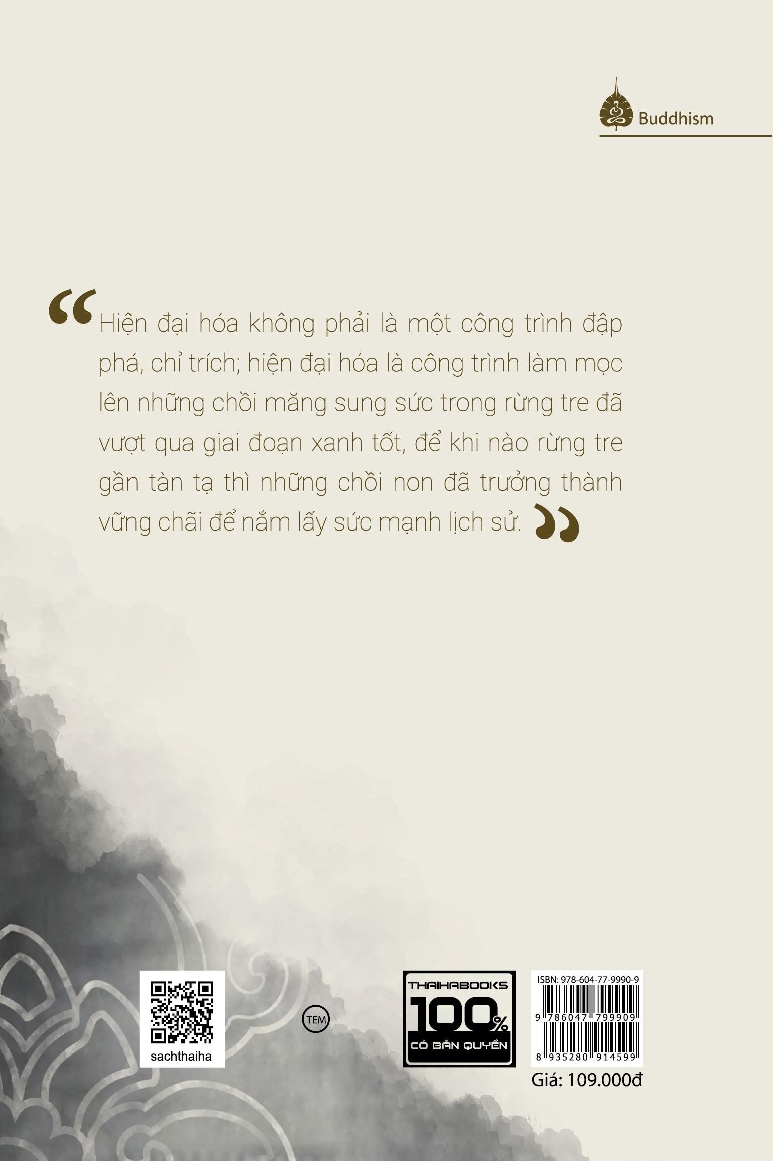 thế và giữa hai công trình có những tương quan mật thiết. Phải hiện đại hóa đạo Phật nếu chúng ta muốn đạo Phật có thể đóng góp thiết thực và hữu hiệu vào công cuộc xây dựng xã hội chúng ta.