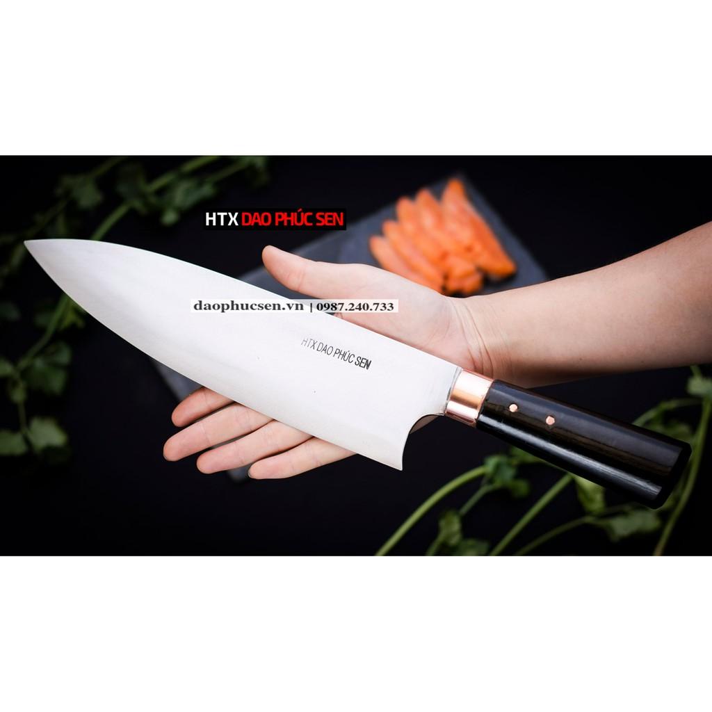 Dao Phúc Sen chặt thái bản 10 cán ốp cẩm - Kích thước: lưỡi: 22cm, cán: 13cm, rộng: 10cm, dầy: 3ly, trọng lượng : 600g - Chức năng: sử dụng chuyên chặt GÀ VỊT, LỢN