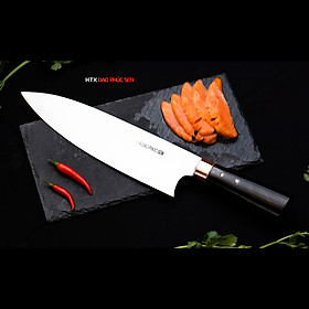 - Chức năng: chuyên chặt thái cá, chặt gà, lọ - Kích thước: Lưỡi: 26cm, cán: 12,5cm, rộng: 6,5cm, dầy: 4ly, trọng lượng: 480g - Cán : Gỗ mun , Khâu và chốt đồng đỏ