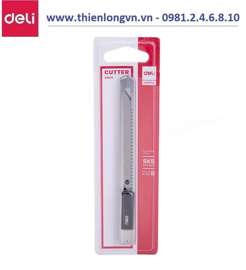 - Dao trổ 30 độ Inox Deli 2034 có độ dài 9 mm nhỏ gọn. - Tay cầm vừa tầm tay giúp bạn linh hoạt hơn khi di chuyển dao lúc cắt, rọc. - Lưỡi