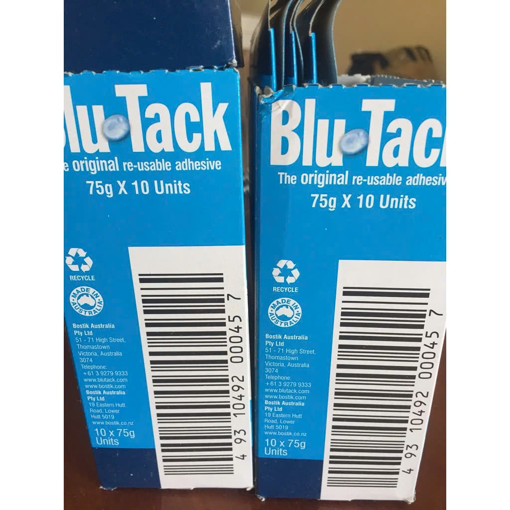 Vỉ Blutack được nhà máy Bostik được đóng gói đủ 75gr hoặc 45gr chia làm 4 thanh bên trong.