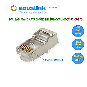 Hạt mạng RJ45 cat5 chống nhiễu Nova CC-01-00175 chân tiếp xúc mạ vàng 50U cao cấp Đầu bấm mạng RJ45 Cat5 chống nhiễu Nova chính hãng là dòng sản phẩm cao cấp do công ty
