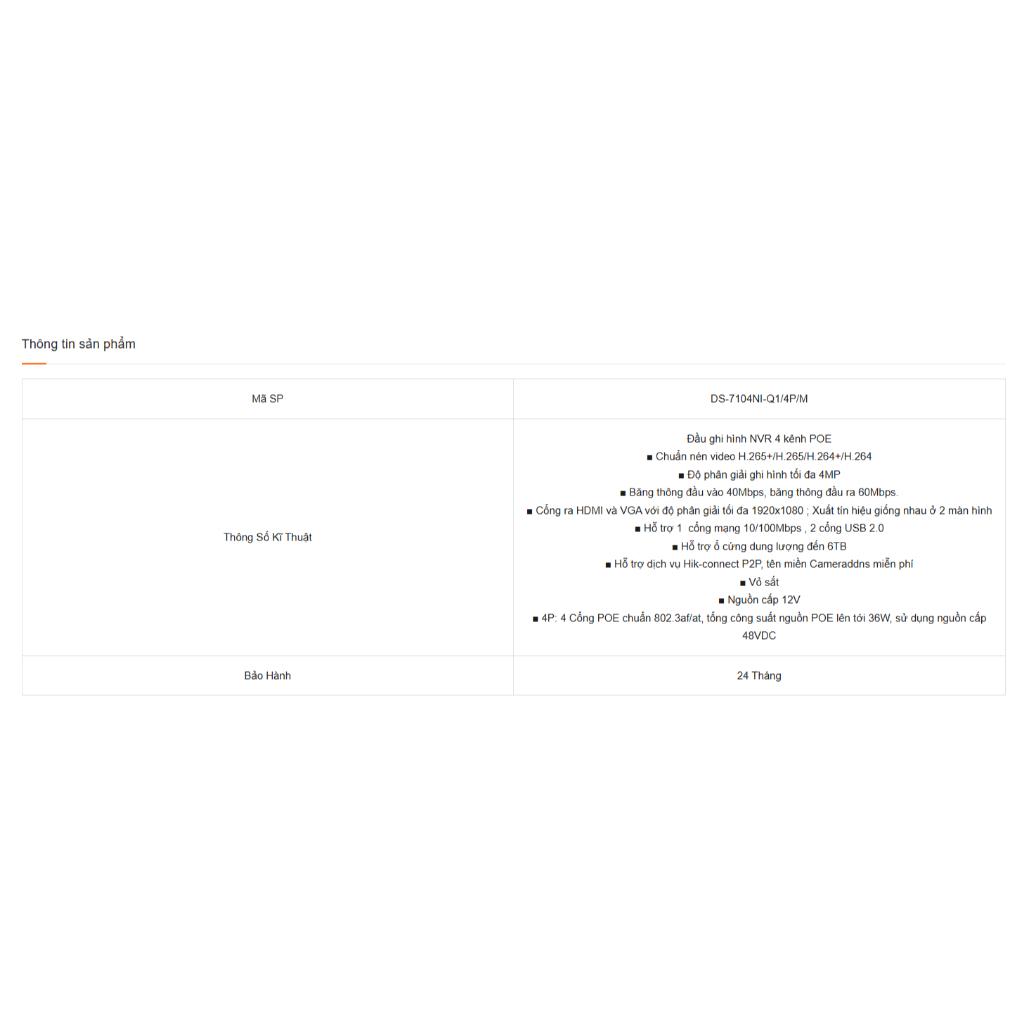 Hikvision DS-7104NI-Q1/4P/M là đầu ghi IP 4 kênh chất lượng, giá tốt. Hỗ trợ chuẩn nén H.265+ giúp giảm thiểu dung lượng lưu trữ và băng thông ghi hình đến 80%. Giúp bạn tiết kiệm