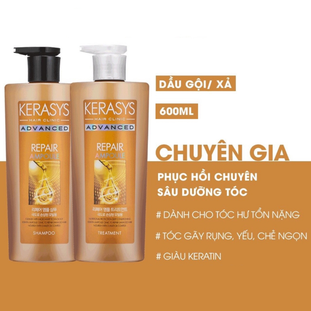 - Bộ dầu gội/ dầu xả KERASYS ADVANCED giúp chăm sóc da đầu và tóc từ sâu bên trong giúp phục hồi hư tổn.