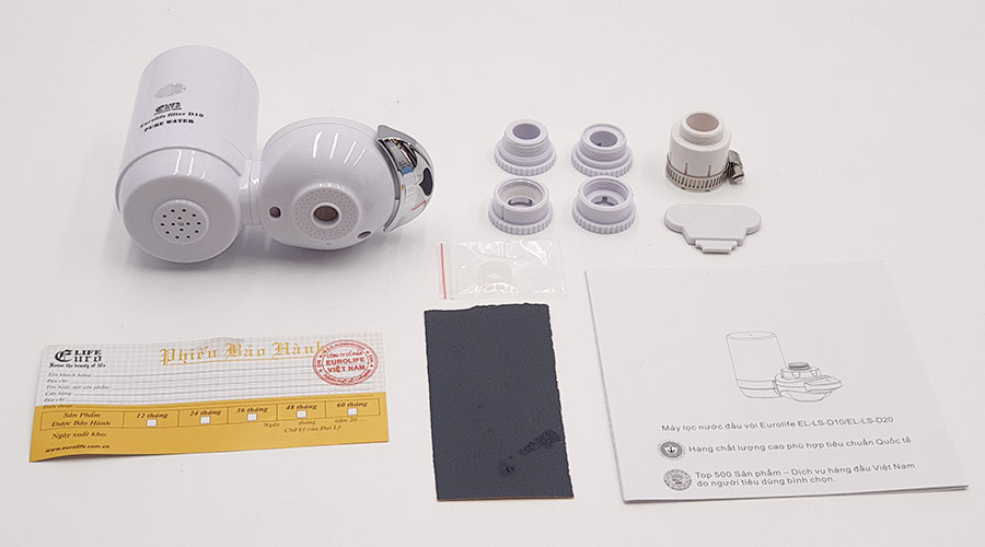 - Lõi lọc cho chất lượng nước đạt chỉ tiêu Bộ Y tế do Viện Pasteur kiểm định THIẾT KẾ VÌ SỨC KHỎE Hiện nay, chất lượng nước đang là mối quan tâm hàng đầu của các gia đình. Nhưng với mật độ công nghiệp hóa và ô nhiễm môi trường, đặc biệt ở thành phố thì vấn đề nước sạch luôn được quan tâm. Eurolife trân trọng giới thiệu sản phẩm mang tính đột phá về công nghệ, xanh, sạch, an toàn và thân thiện với người sử dụng : Máy lọc trực tiếp đầu vòi Eurolife EL-LS-D10-1 (Trắng) CÔNG NĂNG HOÀN HẢO Loại bỏ đến 99.99% vi khuẩn, vi sinh, các chất độc hại, clo, kim loại nặng, thuốc trừ sâu, rong rêu trong nước, đồng thời khử mùi, giúp nguồn nước trong lành, tươi mát và mềm mại hơn bao giờ hết. An toàn cho việc ăn uống và nấu nướng. Đầu vòi trực tiếp được thiết kế với hai chế độ chảy, dòng nước xoắn tạo bọt, tránh văng bắn, tiết kiệm nước tối đa cho người sử dụng ! Một chế độ tăng áp và 1 chế độ chảy thông thường. VIỆN PASTEUR CHỨNG NHẬN CÁC CHỨC NĂNG SỬ DỤNG Máy lọc với thiết kế 3 chức năng chảy , bao gồm cả chức năng tăng áp cho vòi nước khi không lọc. 1 - Chế độ tăng áp cho vòi khi không qua máy lọc Chế độ tăng áp chảy xối mạnh mẽ, giúp bạn rửa rau củ hay những đồ vật có bám dính cao, tiện lợi và hữu ích ! 2 - Chế độ chảy tạo bọt Đầu chảy tạo bọt, không văng bắn và tiết kiệm nước 3 - Chế độc qua lõi lọc Các mặt chức năng chảy của máy lọc Núm chuyển đổi chức năng dòng chảy Núm điều chỉnh linh động, xoay 360 độ, mạ Chrome sang trọng, thuận tiện cho việc sử dụng. Thiết kế khỏe khoắn và chắc chắn ! Đầu lọc có thể xoay một góc 30 độ để điều chỉnh hướng dòng chảy theo nhu cầu sử dụng. Thiết kế riêng rẽ từng phần, giúp người sử dụng dễ dàng lắp đặt, thay thế cũng như súc rửa vệ sinh sản phẩm. CẤU TẠO CỦA LÕI LỌC Lõi lọc được thiết kế hoàn hảo với 7 cấp độ lọc, giúp nguồn nước tinh khiết hơn bao giờ hết. Lõi lọc có tuổi thọ cao, có thể vệ sinh định kỳ, tăng tuổi thọ sản phẩm. Lõi lọc sử dụng cho khoảng 2.000 lít nước sạch. Tương đương khoảng thời gian từ 03 đến 06 tháng, tùy từng nguồn nước sử dụng. Chi phí để sử dụng nguồn nước sạch chưa bao giờ có thể tiết kiệm hơn với Eurolife, bởi chúng tôi không chỉ cung cấp máy lọc nước EL-LS-D10, mà còn cung cấp lõi lọc cho từng loại với mức giá cực kỳ tiết kiệm (Hãy tìm sản phẩm Lõi lọc máy lọc nước tại vòi EL-RS-D10 trên Lazada bạn nhé) Mỗi ngày, chi phí cho nguồn nước tinh khiết duy nhất chỉ với 1.000 VNĐ. Thật không thể tưởng tượng, vì điều đó chỉ có ở Eurolife, bởi vì chúng tôi luôn quan tâm đến bạn, đến sức khỏe của gia đình bạn và giảm thiểu tối đa các chi phí mà bạn cần trang trải. Lưu ý quan trọng : Đối với nguồn nước nhiễm phèn và hóa chất nhiều, lõi lọc sẽ nhanh vàng và phần sứ sẽ mềm đi nhanh chóng. Vì vậy, hãy súc rửa lõi lọc thường xuyên để tránh tình trạng nghẹt nước. Khi gỡ lõi lọc ra khỏi máy, lên lưu ý xoay lõi lọc nhẹ nhàng và lắp đặt thẳng, đúng chiều quy định tránh tình trạng bể vỡ lõi lọc. Khi lõi mềm đi, hoặc nghẹt nước nhiều là lúc cần được thay thế. PHỤ KIỆN ĐI KÈM Bộ sản phẩm đi kèm với 5 đầu lắp đặt khác nhau, 2 đầu cho những lắp đặt thông dụng nhất, kèm khóa vặn, giấy nhám, bạn không cần phải mua thêm bất cứ linh kiện nào khác ! THÔNG SỐ KỸ THUẬT SẢN PHẨM ĐÓNG GÓI SẢN PHẨM DỄ DÀNG LẮP ĐẶT Bộ sản phẩm đi kèm với 5 đầu lắp đặt khác nhau, 2 đầu cho những lắp đặt thông dụng nhất, kèm khóa vặn, giấy nhám, bạn không cần phải mua thêm bất cứ linh kiện nào khác ! Sản phẩm có thể lắp đặt cho nhiều loại vòi rủa khách nhau như: vòi rửa chén, vòi lavabo, vòi hồ, vòi sen.. với các đầu ren trong hoặc rean ngoài 21mm, với các loại vòi không có ren phù hợp, máy lọc nước đã đi kèm một đầu nối đa năng có thể lắp đặt thuận tiện hơn. THỰC TẾ LẮP ĐẶT CÙNG VÒI CHẤT LƯỢNG HÀNG ĐẦU Thương hiệu Eurolife Việt Nam là một thương hiệu uy tín hàng đầu trên thị trường Việt Nam với 12 năm kinh nghiệm Các sản phẩm Eurolife đạt nhiều chứng chỉ uy tín trong nước như :