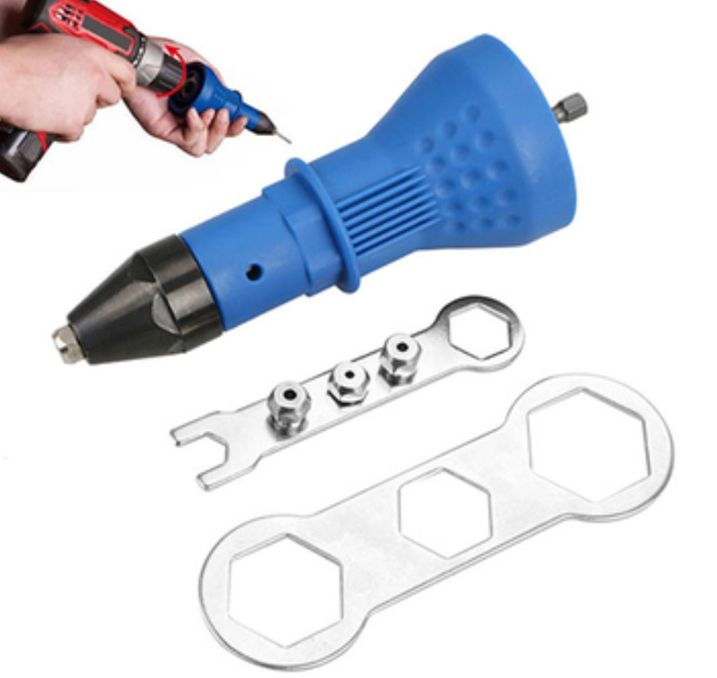 Đầu rút đinh tán gắn máy khoan có đầu cặp nhỏ nên lắp được hầu hết tất cả các loại máy khoan : nhưng khoan điện, khoan pin, hoặc thậm chí là cả khoan động lực.