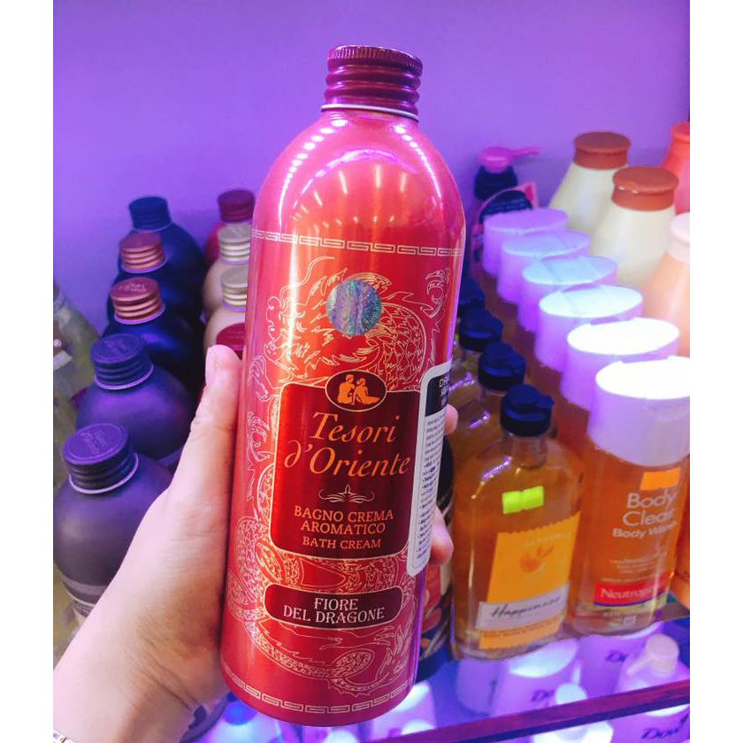 Dầu tắm rồng đỏ Tesori d'Oriente chứa thành phần tổng hợp từ chiết xuất quả thanh long và tinh dầu hoa quỳnh không chỉ lấy đi mọi bụi bẩn, bã nhờn, tế bào chết trên da mà còn bổ sung độ ẩm, nuôi dưỡng da mềm mịn, ngăn ngừa lão hóa. Đặc biệt, hương thơm dịu nhẹ, tinh tế của hoa quỳnh sẽ mang đến cảm giác thư giãn khi sử dụng và lưu lại trên da trong nhiều giờ.