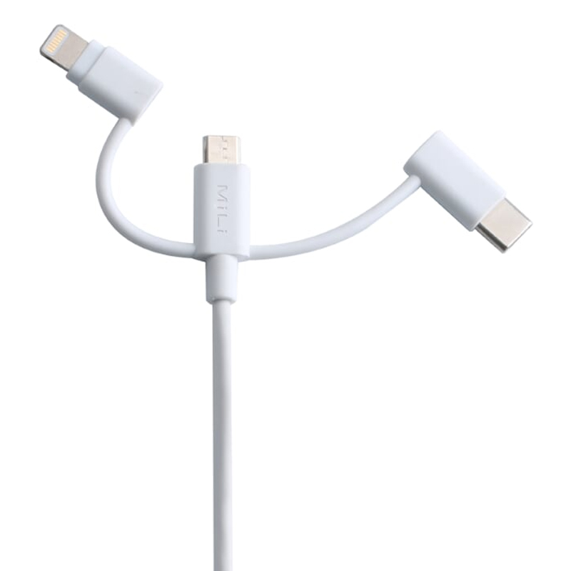 Dây Cáp Sạc 3 Trong 1 MicroUSB/USB Type-C/Lightning MiLi 1m - HI-L31 thiết kế độc đáo với 3 cổng output microUSB, Lightning và USB Type-C