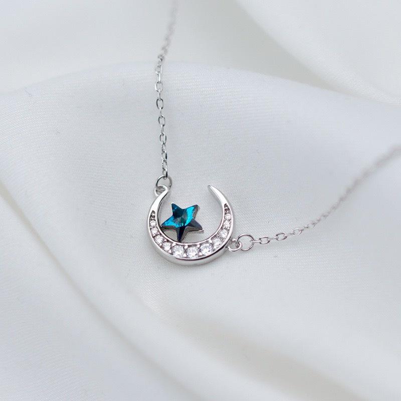 Dây chuyền bạc 925 cao cấp mặt trăng lồng đá zircon hình ngôi sao