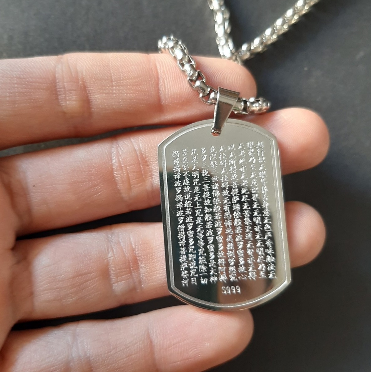Mặt dây chuyền: inox vĩnh viễn không đen khắc lazer bát nhã tâm kinh