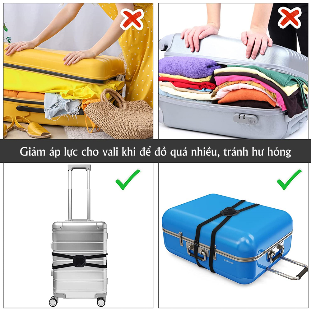 Khi để đồ quá nhiều, vali bị phồng lên sẽ mau hư, sử dụng sản phẩm buộc vali lại để giảm áp lực lên vali, tăng độ bền