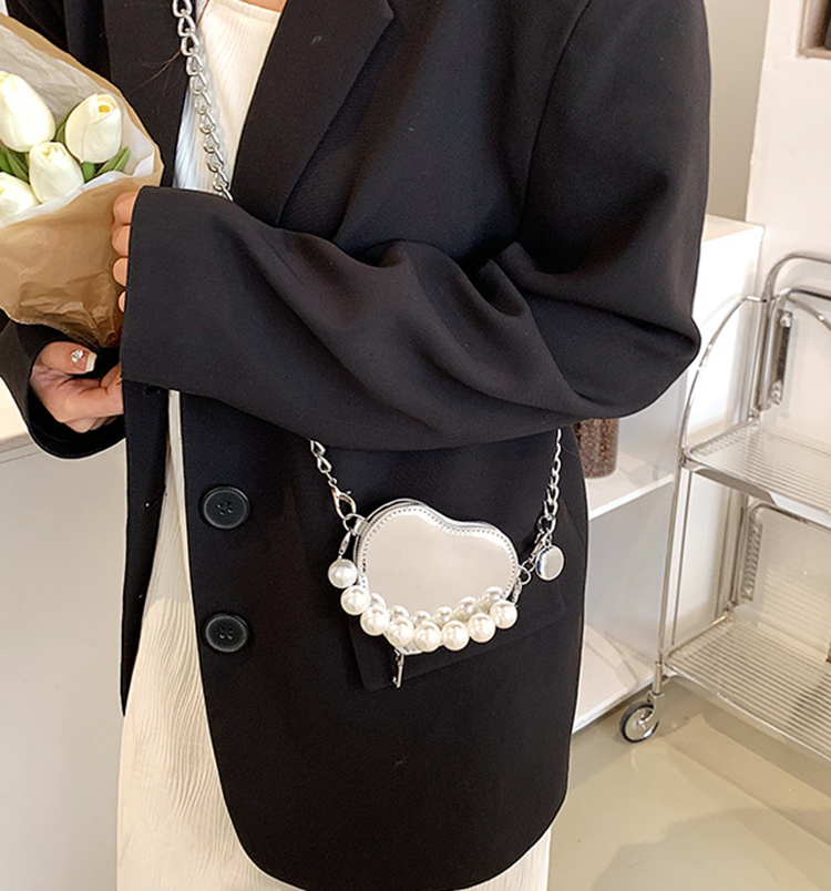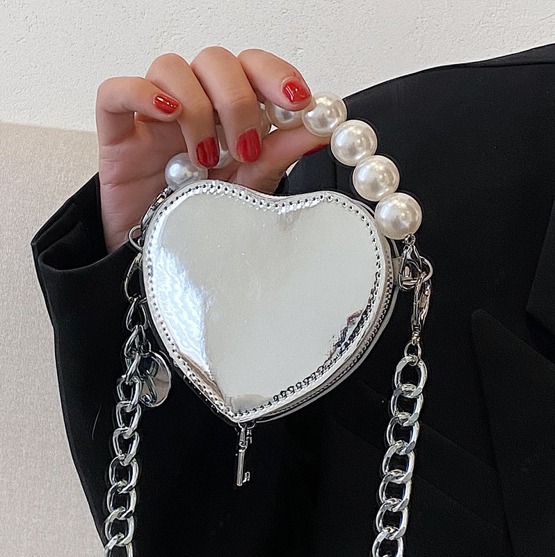PEARL CHIC - Túi Ngọc Trai Bạc Ánh Gương , Đeo Chéo - Cầm Tay Cá Tính