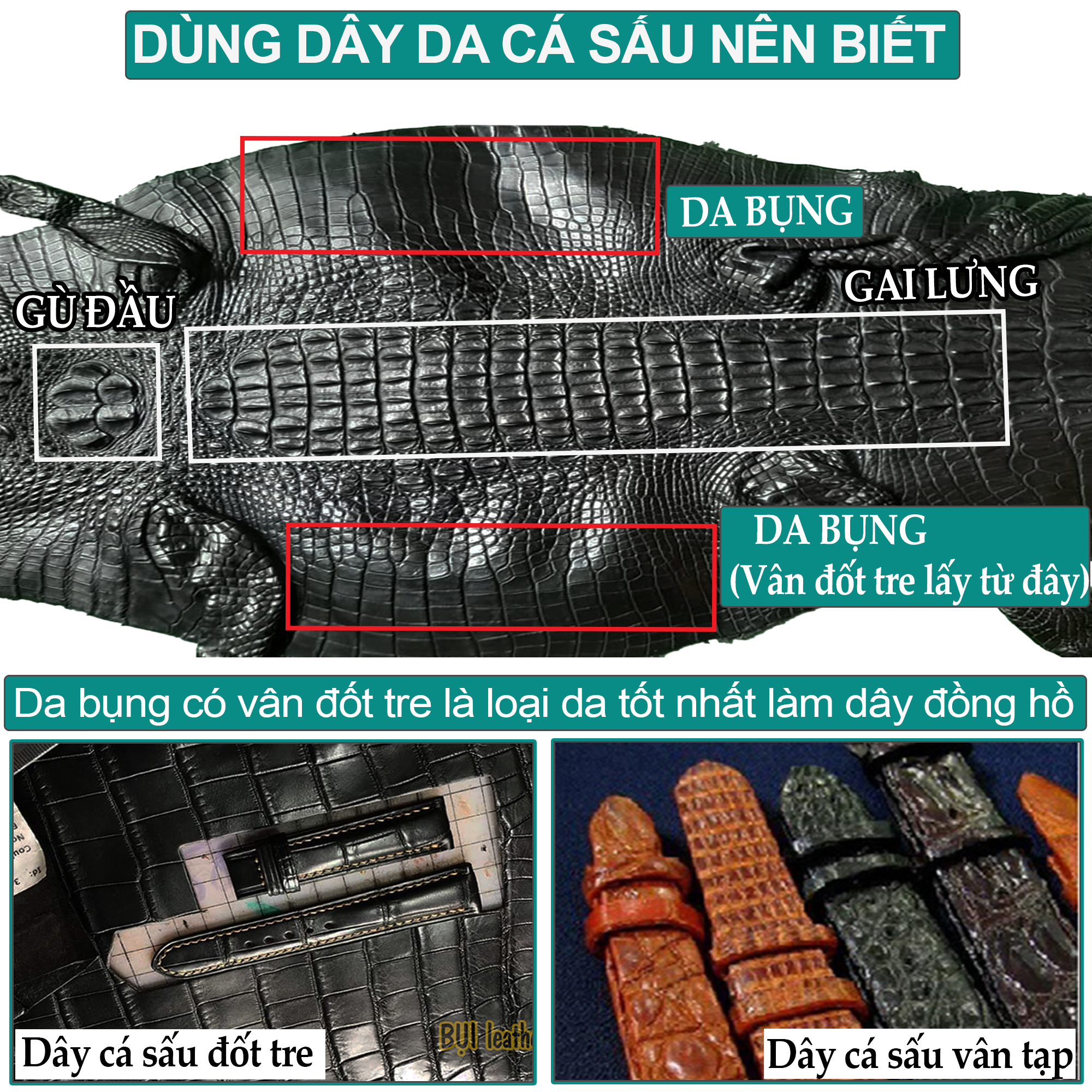 Mua tại TiktokDây đồng hồ nam da cá sấu đốt tre D103 da thật khâu tay thủ công cao cấp, dây da đồng hồ size 18mm 20mm 22mm 24mm phù hợp với cả dw rolex hublot orient seiko casio,tặng tool tháo và chốt khóa,thương hiệu Bụi leather, bảo hành 12 tháng
