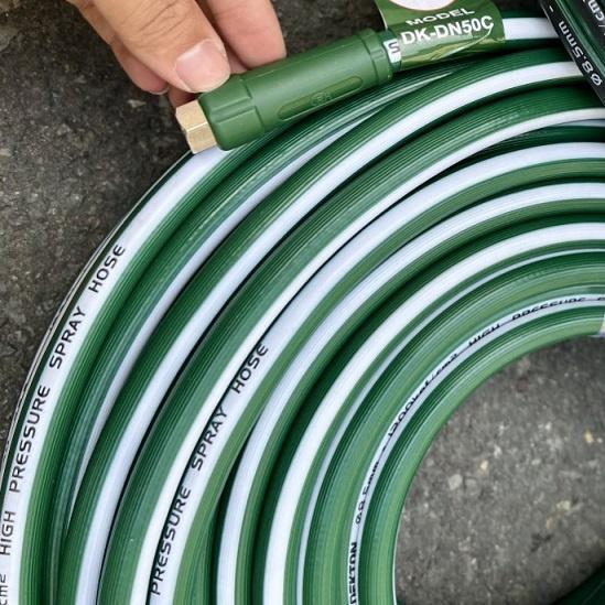 Dây xịt rửa cao áp Dekton được làm từ lớp chịu lực được đan bằng sợi cotton không khe hở, giúp chịu được áp lực cao mà không gây ra các vết nứt hay hỏng hóc. Chất liệu này không chỉ giúp dây có độ bền cao mà còn đảm bảo tính linh hoạt, dễ dàng sử dụng trong nhiều điều kiện khác nhau.