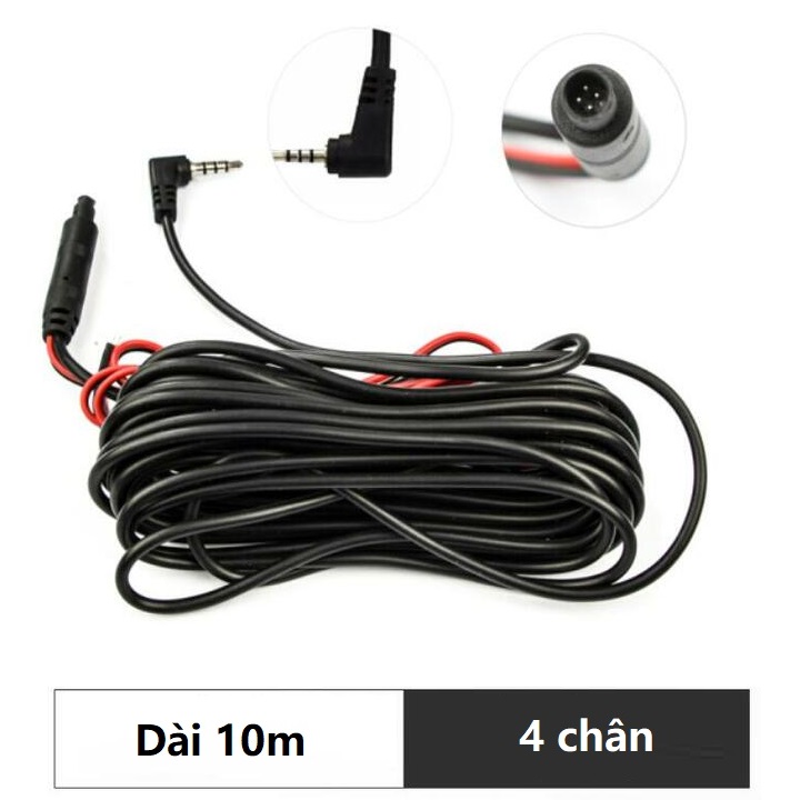 - Dây đi theo camera hành trình, camera lùi thường dài 5.5m, không đủ lắp cho xe tải, xe chở khách. Để khắc phục việc đó chúng tôi cung cấp thêm dây nguồn dài 10m với jack kết nối camera hành trình là loại 2.5mm và 4 chân kết nối camera lùi