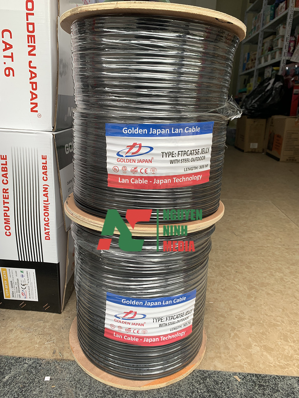 ✨Dây Mạng Ngoài Trời 8 Lõi Golden Japan Cat5e Có Sợi Thép Chịu Lực, Bọc Bạc, Phủ Dầu Chống Ẩm - Hàng Chính Hãng