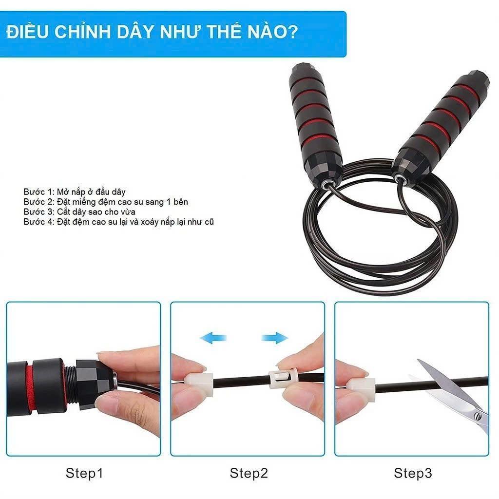 - Chất liệu bền bỉ:Dây nhảy được làm từ lõi thép chắc chắn, giúp đảm bảo độ bền cao khi sử dụng.