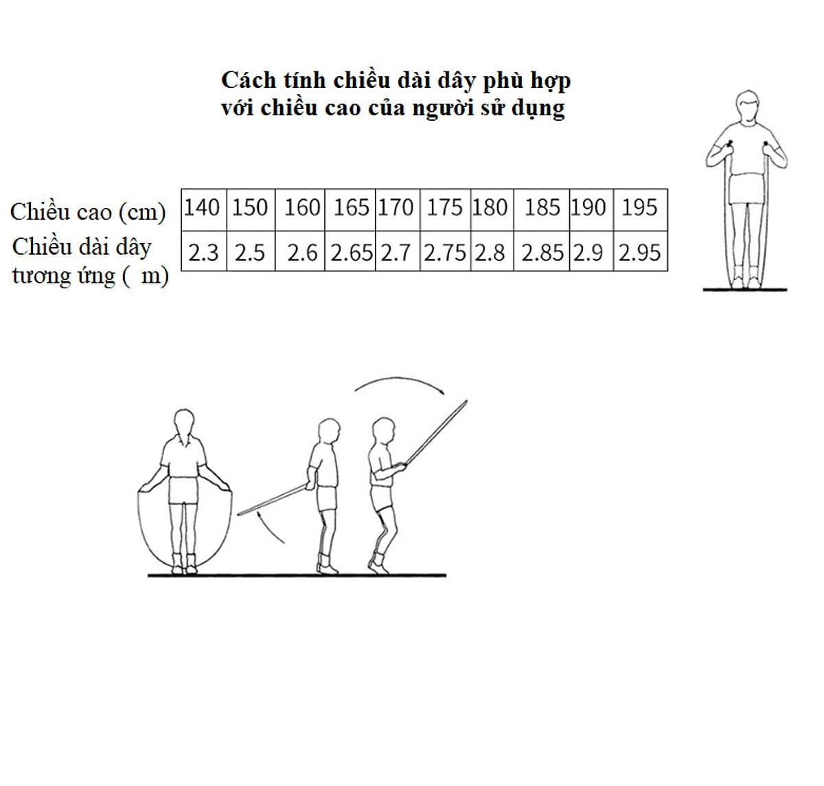 • Dây nhảy cao cấp với độ dầy và dài phù hợp với tất cả mọi độ cao của cơ thể