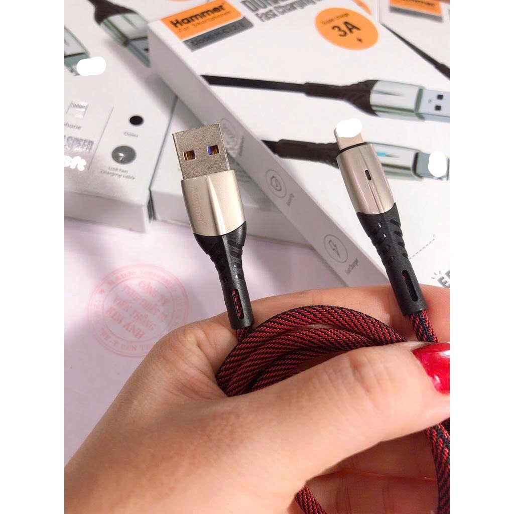 ✨Dây sạc nhanh 3A Hiệu Ham mer ( H-C12-I ), Chân L Có đèn báo, Hàng chính hãng bảo hành 12 tháng