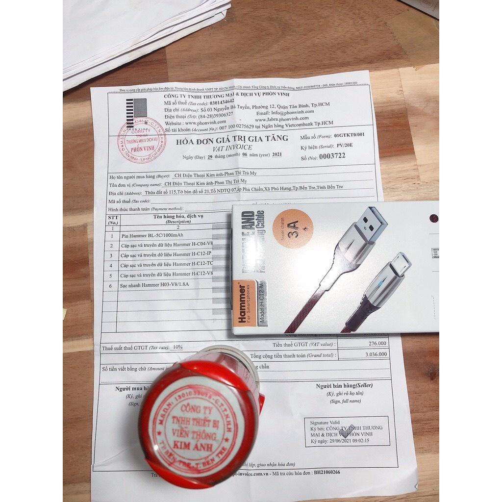 Thông tin sản phẩm : Dây sạc nhanh Hiệu Ham mer ( H-C12-I ) dòng điện 3A