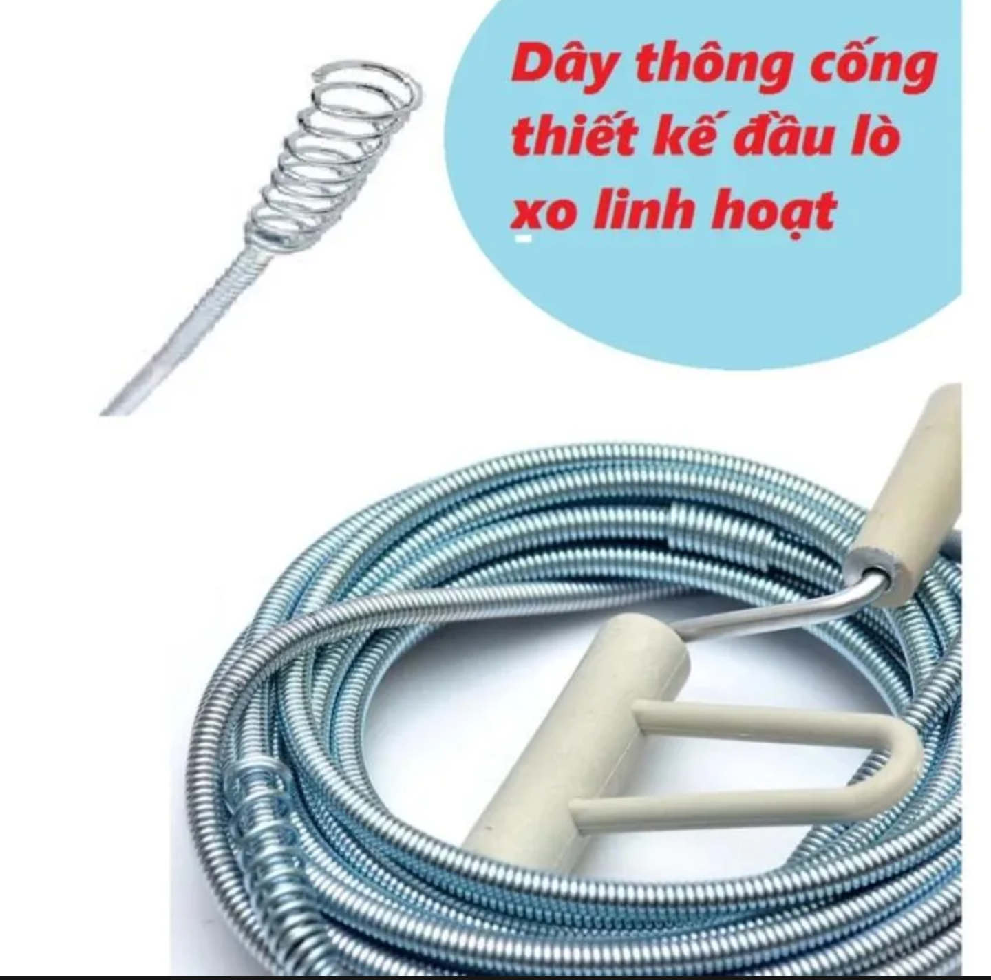 Dây lò xo thông tắc cống, bồn cầu, có thể gắn vào đầu máy khoan để dễ dàng sử dụng.