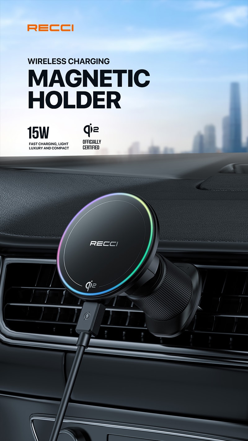 ✨Đế giữ điện thoại tích hợp nam châm và sạc không dây dùng trên xe ô tô RECCI RHO-C43 Hàng chính hãng