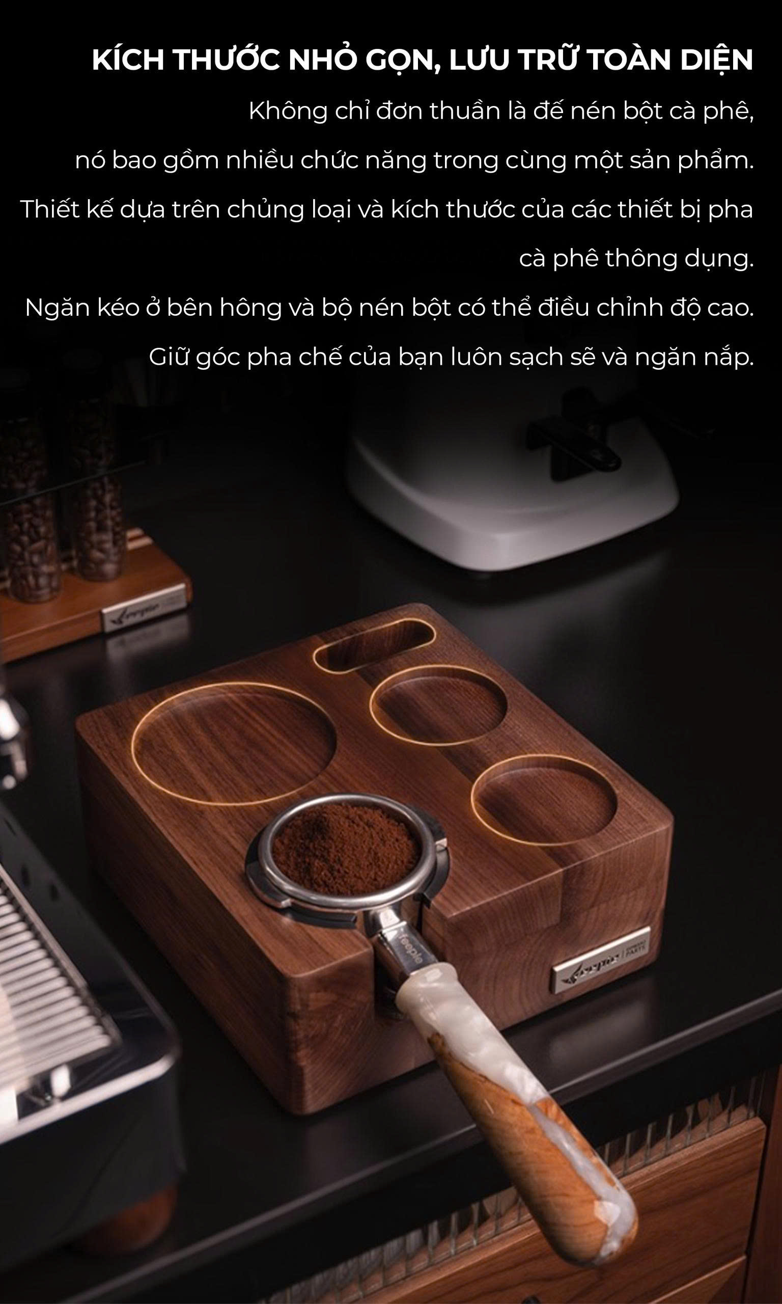 ĐẾ NÉN CÀ PHÊ GỖ ÓC CHÓ NAM MỸ – SỰ LỰA CHỌN HOÀN HẢO CHO BARISTA CHUYÊN NGHIỆP Bạn đang tìm kiếm đế nén cà phê vừa sang trọng, chắc chắn, vừa hỗ trợ