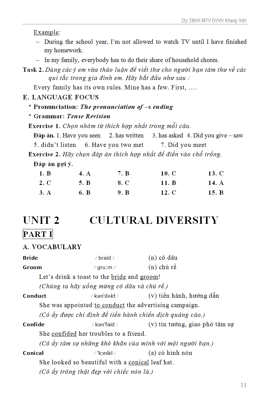SÁCH TA12- U1- Reading: Câu 1- 14