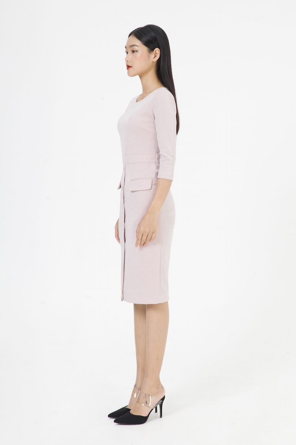 - Đầm dáng ôm midi dài qua gối