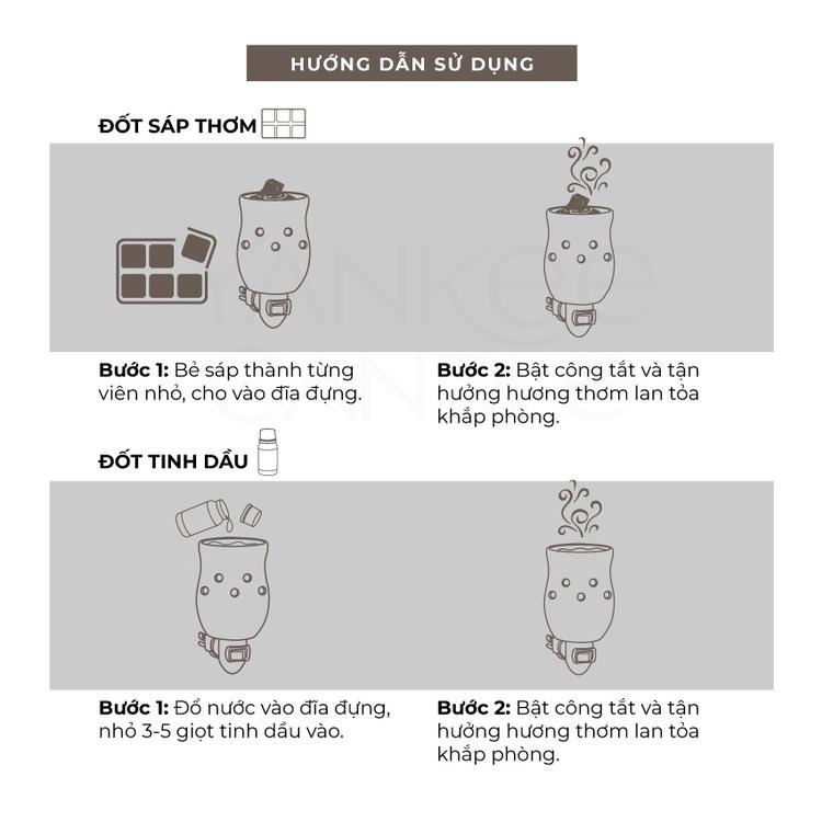 Mua tại TiktokĐèn khuếch tán hương thơm sử dụng bóng đèn Edison để làm sáp ấm lên và tan chảy trong đĩa, từ đó lan tỏa hương thơm trong không khí. HƯỚNG DẪN SỬ DỤNG