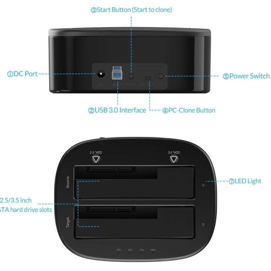 Đế ổ cứng (Docking) 1 khe cắm: 3.5" và 2.5" SATA 3 USB 3.0 ORICO 6218US3-BK( ĐEN) - Hàng Chính Hãng