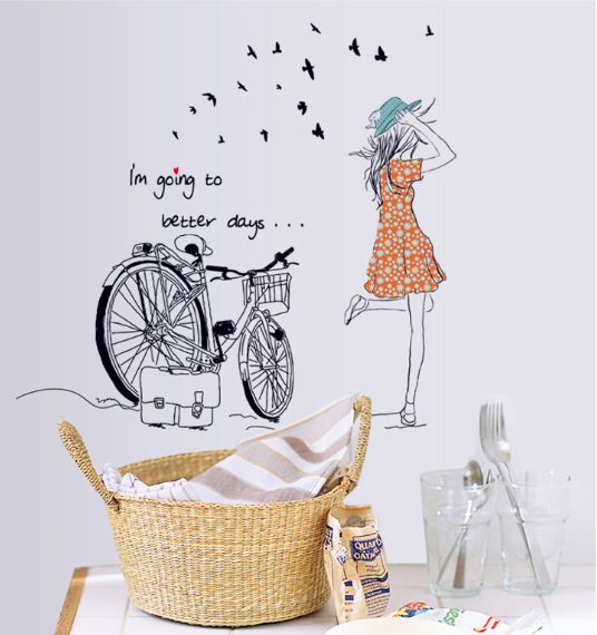 CÔ GÁI ĐẠP XE BỒ CÔNG ANH ĐEN - DECAL DÁN TƯỜNG LUVINA