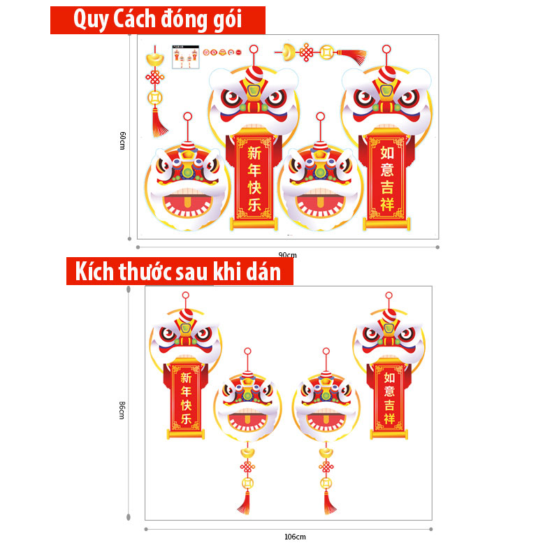 Mua tại TiktokDecal dán tường decal trang trí tết Mẫu Con Lân AMJ927