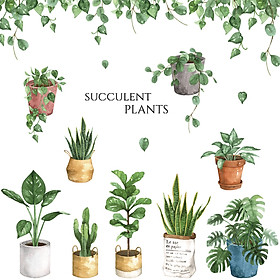 ✨Decal dán tường Sticker dán tường in chất lượng cao có keo mặt sau mẫu Chậu Xương Rồng Vintage ZH71