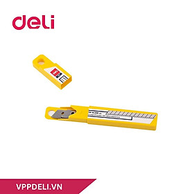 Thương hiệu: DELI - Xuất xứ: Trung Quốc - Kích thước: 0.4mm x 9mm x 80mm - Số mảnh dao: 13 - Quy cách: 10 lưỡi / hộp - Lưỡi thép hợp kim SK5 độ cứng cao và sắc bén