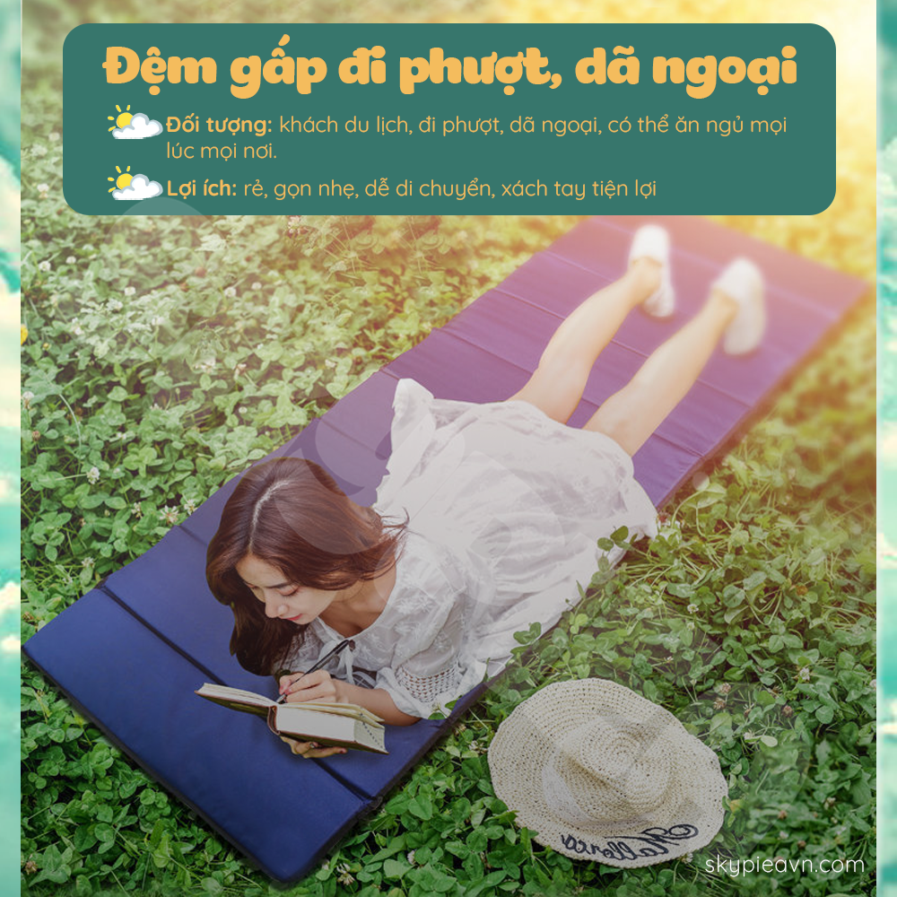 Mua tại TiktokĐệm Gấp Văn PHòng Đệm gấp đa năngđược người tiêu dùng biết đến là loại đệm có nhiều ưu điểm vượt trội nhất trong các dòng đệm hiện nay. Sở dĩ như vậy là vì đây là dòng đệm có thể gập gọn và cực kỳ tiện dụng trong vận chuyển. Nệm được thiết kế một cách nhỏ gọn và có qoai xách phù hợp với việc sử dụng cũng như cất giữ tại văn phòng làm việc. đệm gấp văn phòng, nệm đơn gấp gọn trải sàn ngủ trưa văn phòng, nệm du lịch cắm trại Ruột nệm được cấu tạo từ 100% bông gòn được ép chặt thành tấm mỏng với ưu thế của chất liệu là nâng đỡ cơ thể tối ưu, không xẹp lún và vô cùng thoáng mát. Vỏ nệm là loại vải 100& cotton thoáng mát và được chần một lớp gòn mỏng phía dưới tạo sự êm ái cũng như sang trọng cho sản phẩm. Kích thước đệm: 190cm x 70cm x 1.5cm dày Kích thước gấp gọn: 70x10x19 cm Vải Dù Chống Xước Tiết kiệm không gian Dễ dàng tháo rời vệ sinh Mặt trên bằng vải 100% Cotton mềm, mịn thoáng, tốt cho da. Mặt dưới bằng vải nilon giúp tránh mòn xước trong quá trình sử dụng. Đệm gấp làm 10 miếng nên đệm sau khi gấp kích thước rất gọn. Có bao đựng gấp gọn Phù hợp với nhân viên văn phòng, sinh viên ký túc xá, du lịch