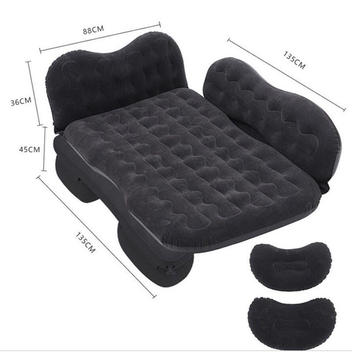 ✨Đệm hơi giường hơi ô tô 5 chỗ 7 chỗ vải nhung cao cấp êm mịn thoáng mát chân rời tiện dụng đi du lịch picnic - Màu Đen