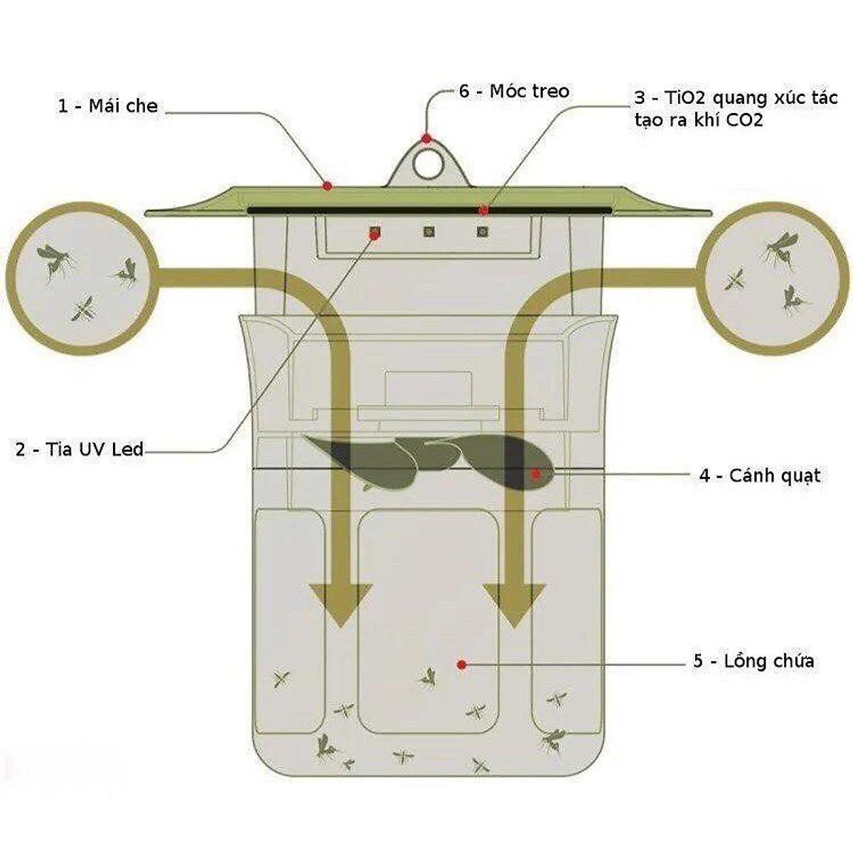 - Hệ thống tạo khí cacbonic và gió của máy bắt muỗi mô phỏng giống hơi thở của con người.