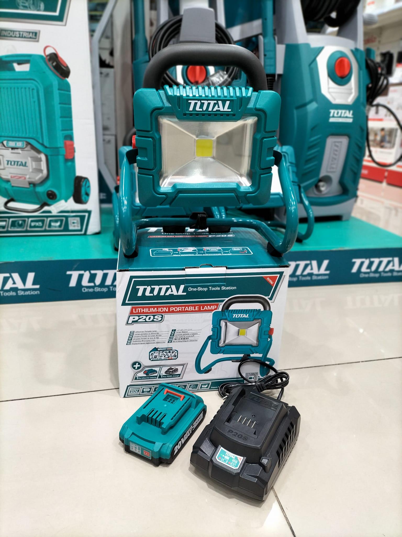 Mua tại TiktokĐèn di động dùng pin 20V TOTAL TWLI20258 Giới thiệu tổng quan: Đèn di động này được thiết kế để mang lại sự tiện dụng cho người dùng khi làm việc trong môi trường thiếu ánh sáng. Với pin 20Vx2.0AH đi kèm và sạc pin TFCLI2001E, người dùng có thể sử dụng sản phẩm trong nhiều giờ liền. Điểm nổi bật: Công suất LED cao (lên tới 20W) Sử dụng pin 20Vx2.0AH và có thể sạc lại Chiếu sáng mức cao: 1800, mức Thấp: 900 Thiết kế nhỏ gọn, dễ mang theo Thông số kĩ thuật