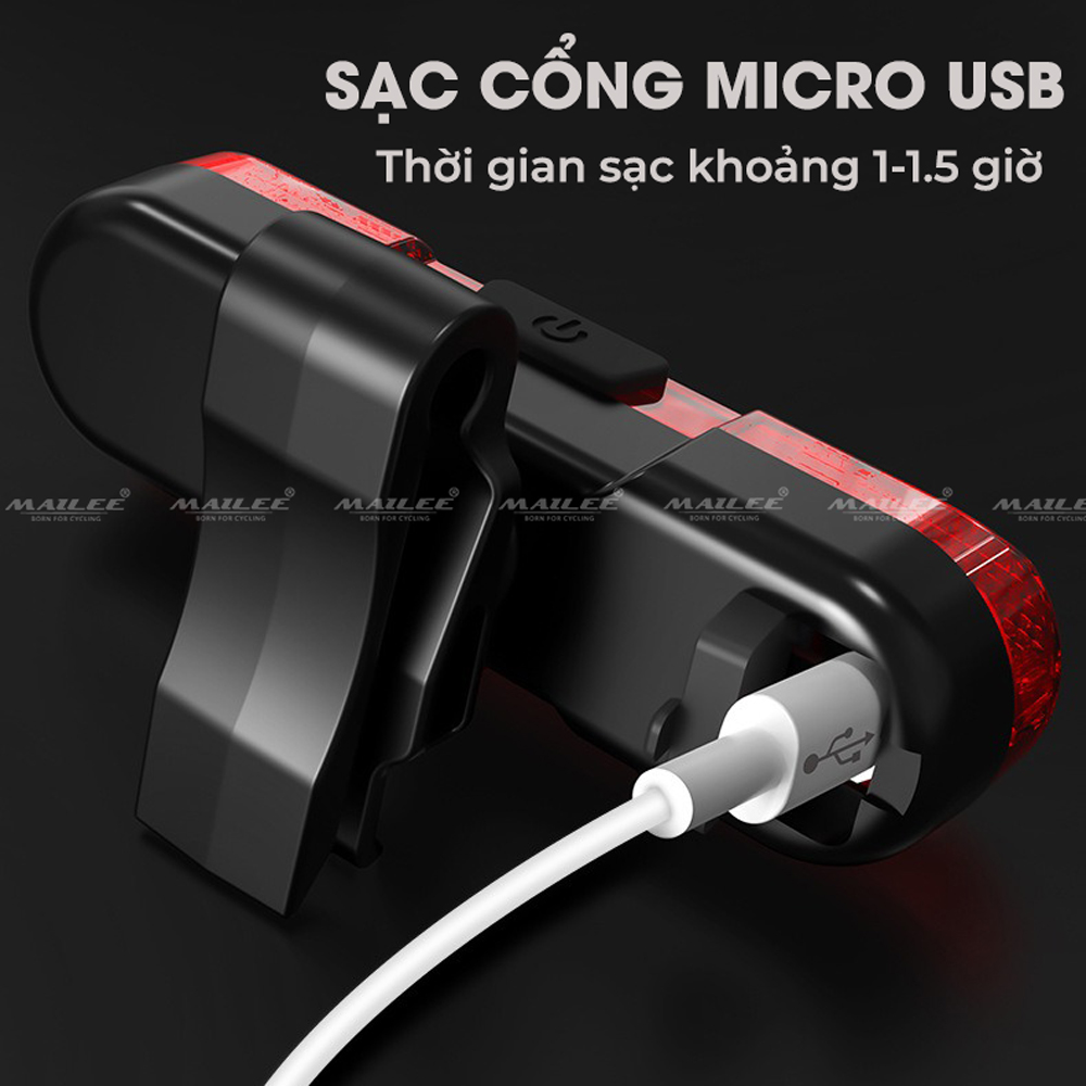 Đèn Đuôi Led Xe Đạp BK880 Chống Nước Siêu Sáng Nhiều Chế Độ Sáng Sạc Điện USB MaiLee Dễ dàng sạc điện qua ngõ micro USB tiện lợi Led sáng giúp đảm bảo an toàn