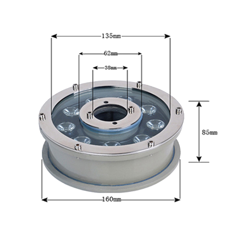 - Toàn bộ đèn led dưới nước dạng bánh xe 9w là một khối hợp kim chắc chắc. Thân đèn được chế tạo từ chất liệu nhôm kỹ thuật có khả năng chịu áp lực tốt, chống gỉ, chống bào mòn.
