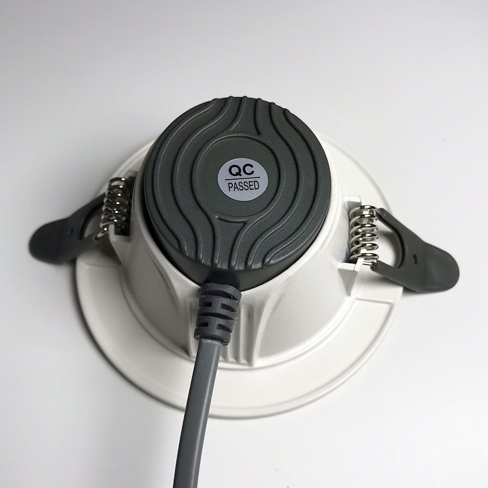 LED Downlight AT04L 90/9W Model: D AT04L 90/9W Wattage: 9W Voltage: 220V/50-60Hz Luminous Flux: 650lm / 630lm Color temperature Dimensions: (118x40)mm Mounting diameter: 90 mm