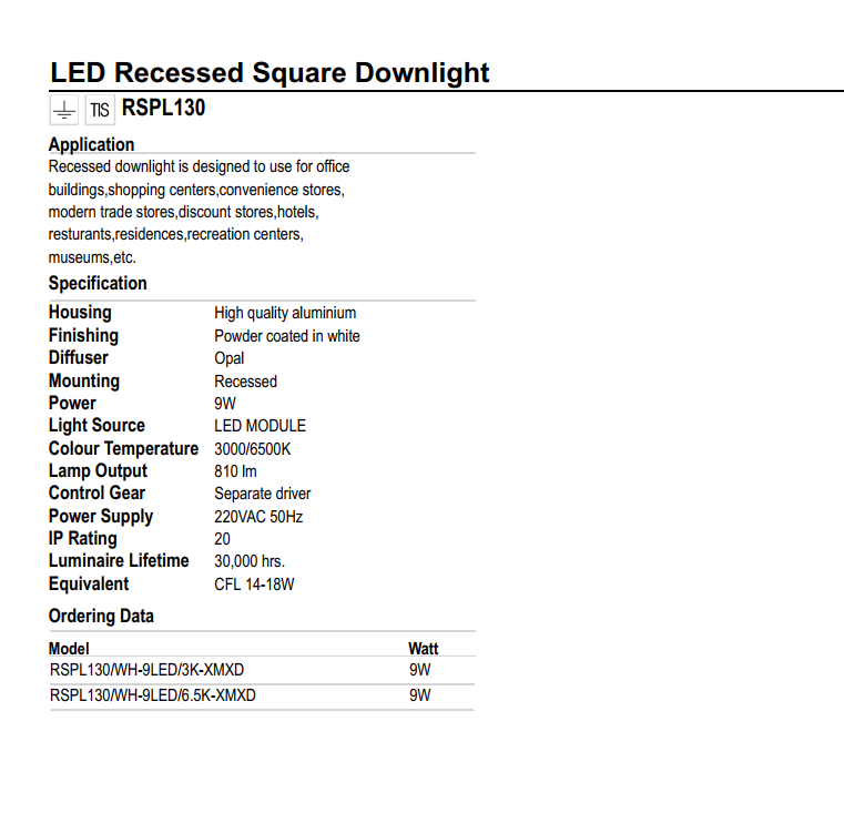 ✨ĐÈN LED ÂM TRẦN VUÔNG LUMAX#RSPL130/W-9LED