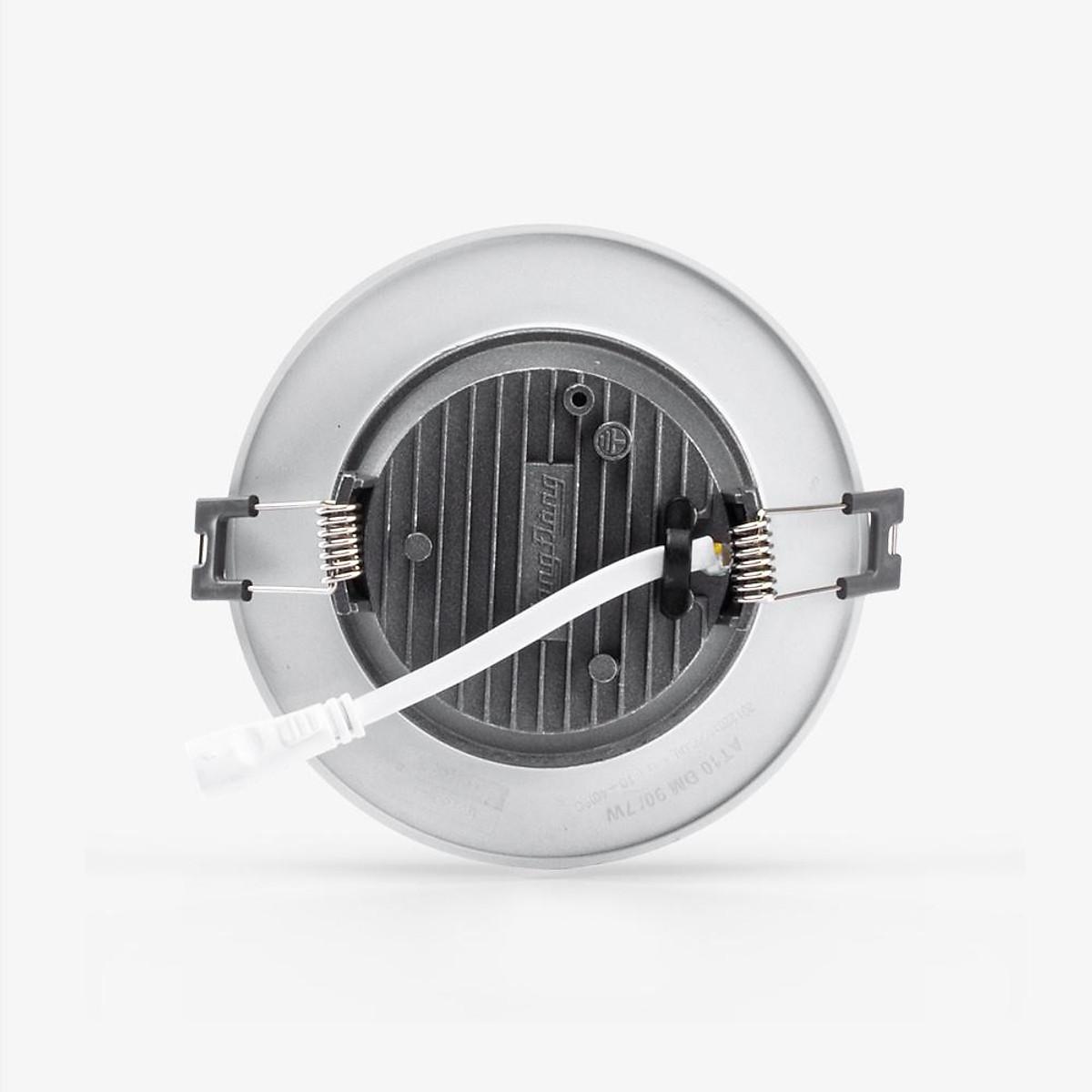 Mua tại TiktokĐèn LED âm trần downlight đổi màu 7W viền bạc Model: AT10 ĐM 90/7W Công suất: 7W Điện áp: 220V/50Hz Quang thông: 700lm Nhiệt độ màu: 6500K/3000K/4000K Kích thước (ØxH): (118x33)mm ĐK lỗ khoét trần: 90 mm Sử dụng Chip LED Hàn Quốc đạt độ tin cậy cao Chất lượng ánh sáng cao (CRI> 80) tăng khả năng nhận diện màu sắc của vật được chiếu sáng Dải điện áp rộng 150 – 250V đáp ứng dải điện áp lưới tại Việt Nam. Vỏ chất liệu nhôm thuần được phủ lớp sơn nano cho màu sắc tương đồng với màu sắc hệ trần thạch cao, trần nhôm. Nguồn rời, giảm độ dày của đèn phù hợp lắp trần thạch cao có khoảng cách giữa trần bê tông và trần thạch cao thấp Đổi 3 màu ánh sáng trong cùng một sản phẩm, vành mạ bạc tinh tế
