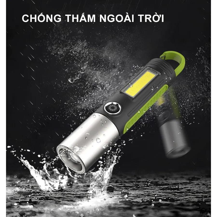 Đèn pin COB siêu sáng vỏ nhôm cao cấp pin trâu sạc lại bằng cổng C